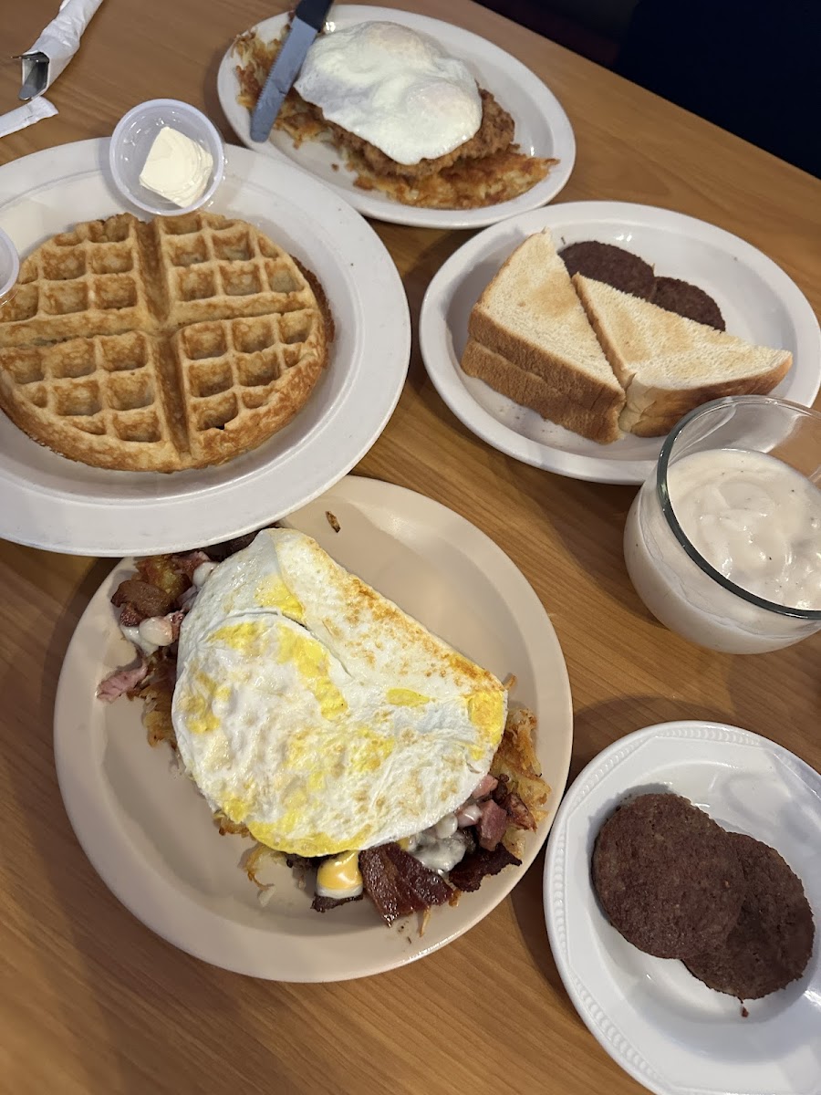 One of the standout dishes here is the Chicken Fried Steak Breakfast. It's a Texas classic, served crispy and golden, paired perfectly with fluffy eggs and savory gravy. If you're in the mood for something a little different, the Sausage Texas Toast is another popular choice. This mouthwatering dish features a thick slice of Texas toast topped with savory sausage, making it a perfect option for breakfast or lunch.
