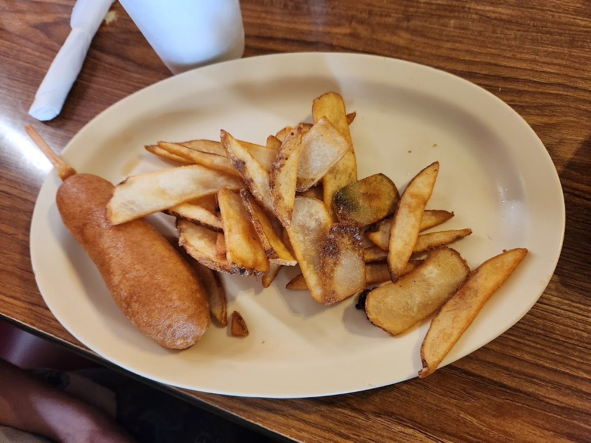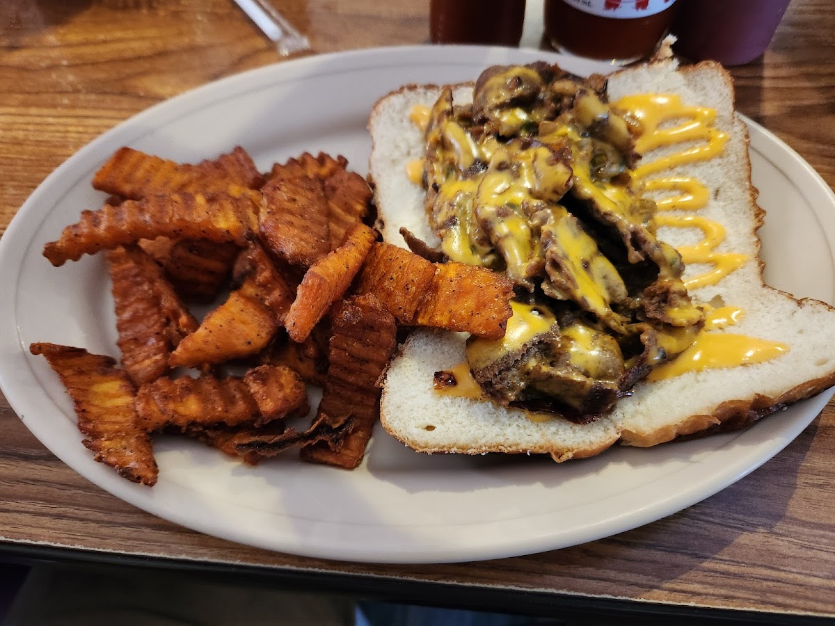 For lunch, you can't go wrong with the Philly Cheese Steak Sandwich and Sweet Potato Fries. This sandwich is loaded with tender beef, melty cheese, and sautéed veggies, all packed into a soft hoagie roll. It pairs wonderfully with the crispy Sweet Potato Fries, which add a bit of sweetness to your meal. If you're on the go, the Corn Dog and Fries is a great option for a quick and satisfying meal. It's a fun, tasty choice that everyone can enjoy.